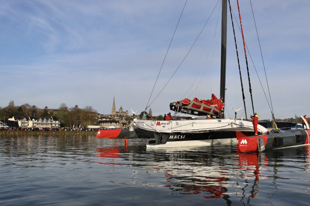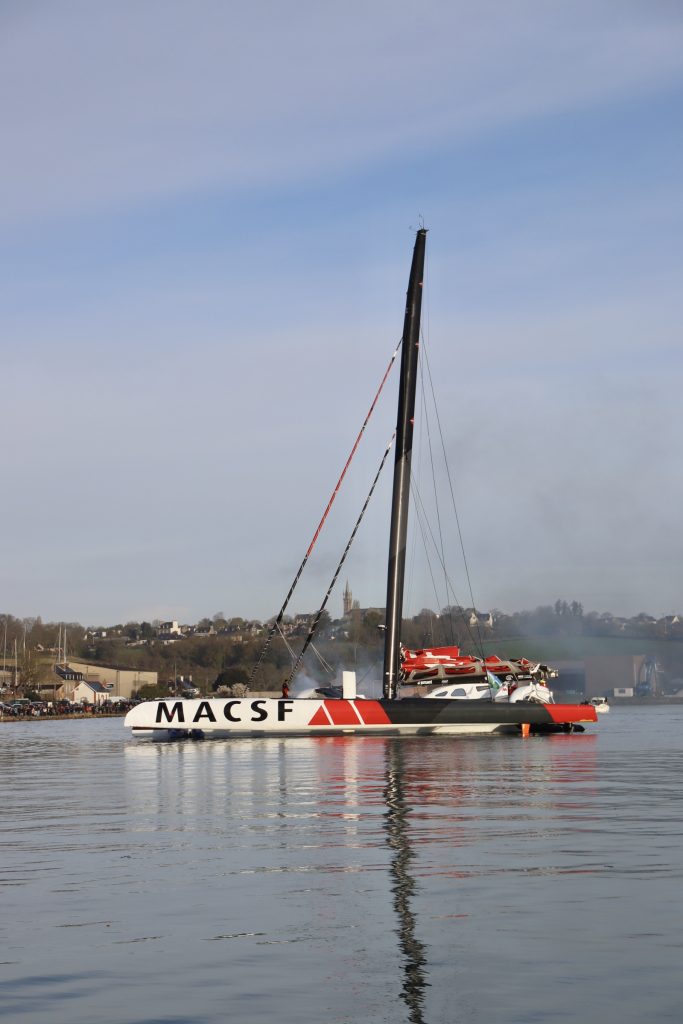 Tour du monde à l’envers – Arrivée de Guirec Soudée et de son Ultim au port de Tréguier.