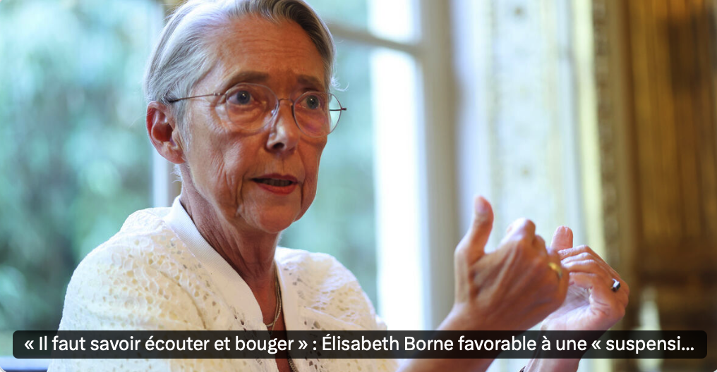 Article Le Parisien : « Il faut savoir écouter et bouger » : Élisabeth Borne favorable à une « suspension » de sa réforme des retraites.